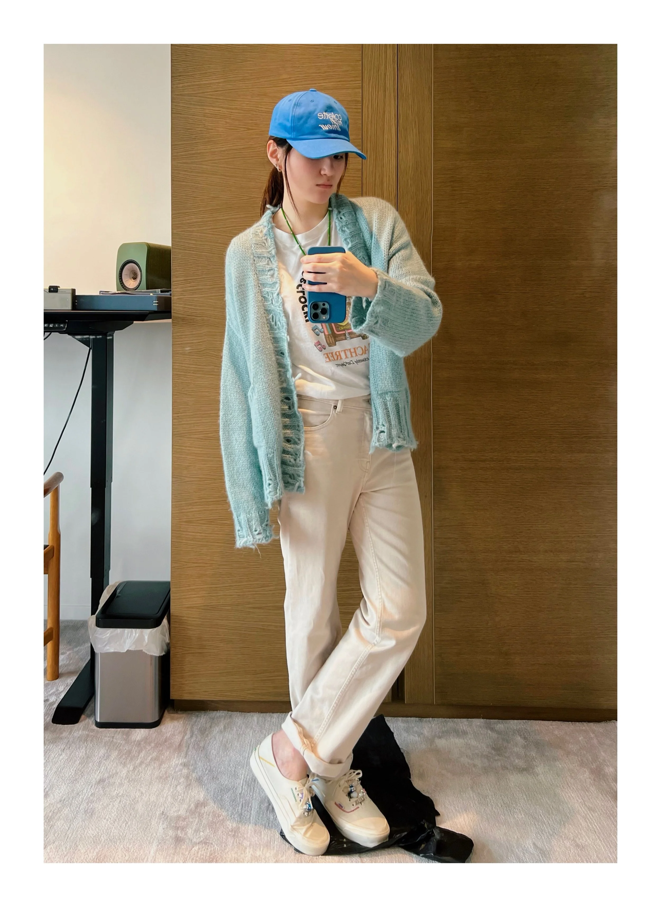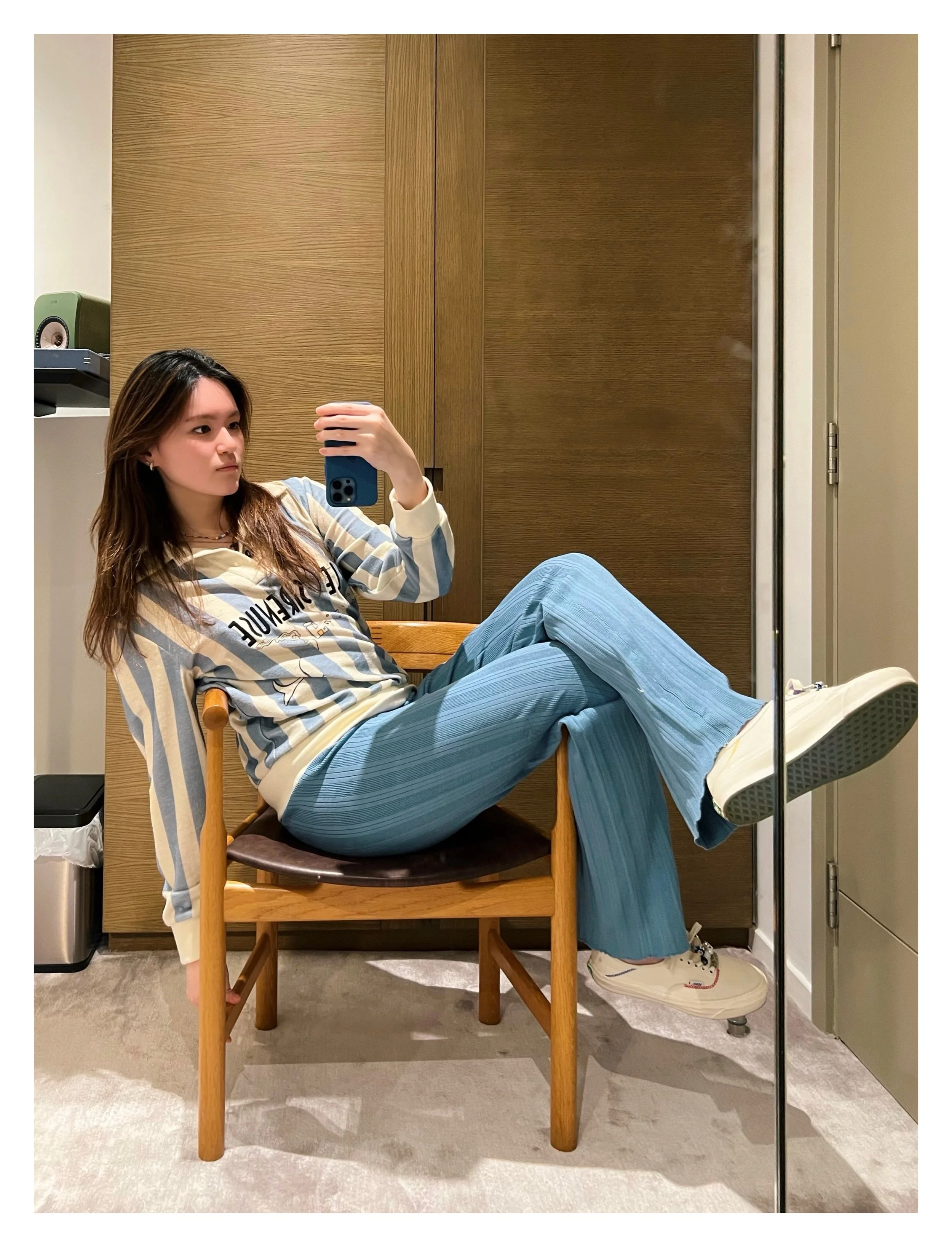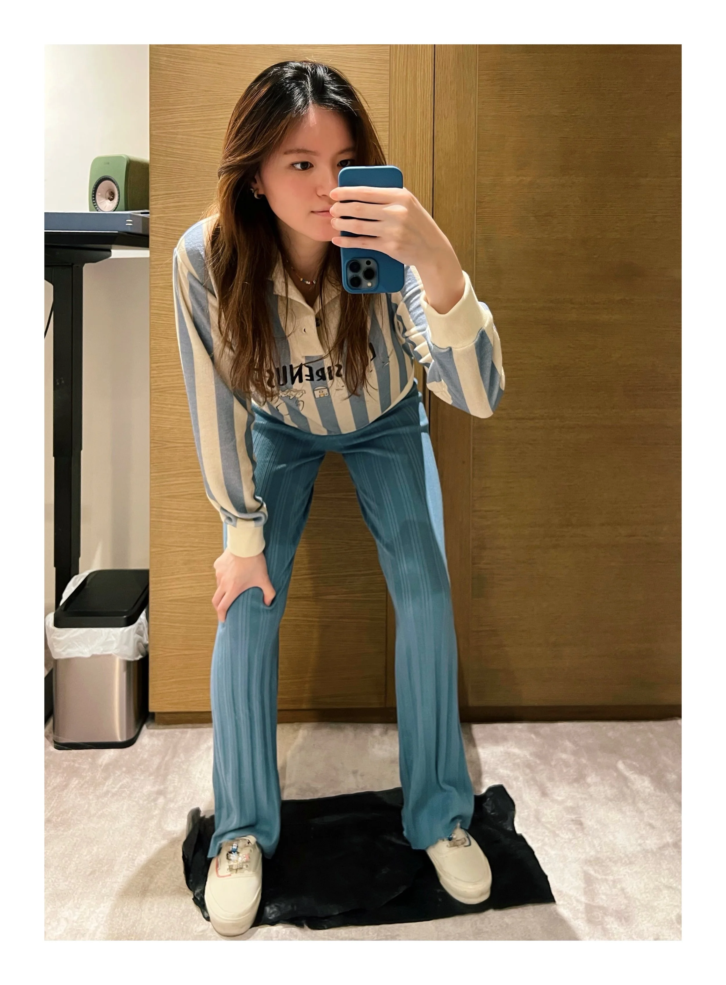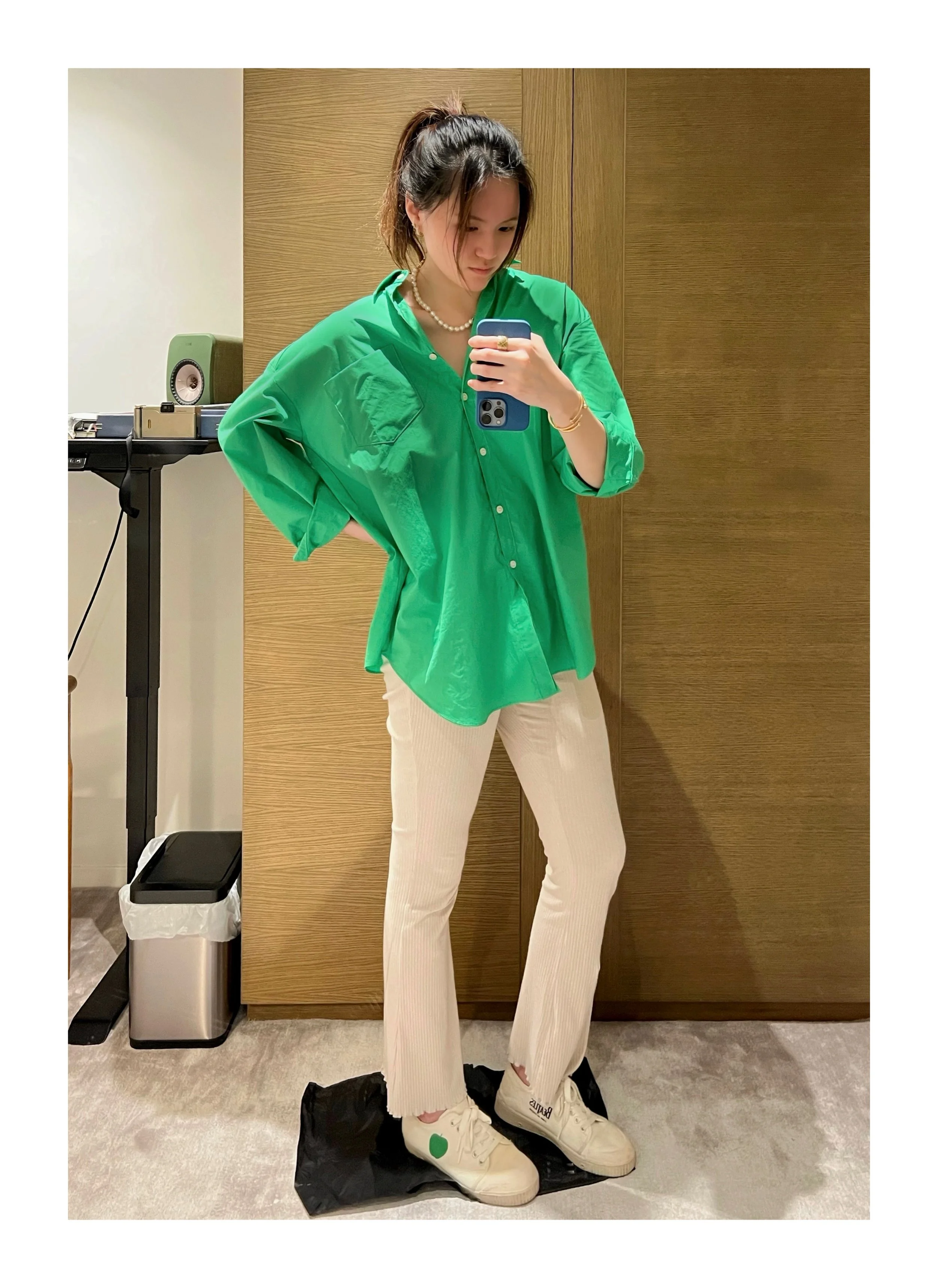 I LOVE BASIC ESSENTIAL PIECES THAT HAVE A SUBTLE FLAIR TO THEM, BUT I HAVE RECENTLY DABBLED INTO A MORE COLORFUL AND ADVENTUROUS PALETTE. FINDING VINTAGE PIECES HAS ALSO BEEN A SLIGHT ADDICTION OF MINE. THAT FEELING OF FINDING THE PERFECTLY TAILORED VINTAGE FLARED TROUSERS OR EVEN A COOL VINTAGE GRAPHIC TEE - HONESTLY LIKE CHRISTMAS MORNING! HERE ARE A FEW FIT PICS I HAVE TAKEN AND YES…NO SHOES ON THE CARPET, PLEASE.